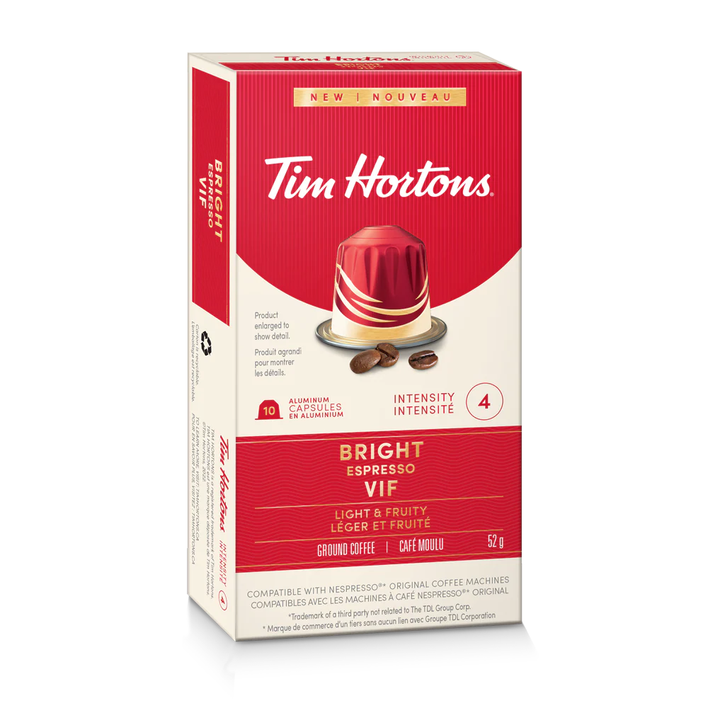 Our aluminum capsules are compatible with Nespresso Original Line. Disclaimer: Tim Hortons is not affiliated with the Nespresso® brand.