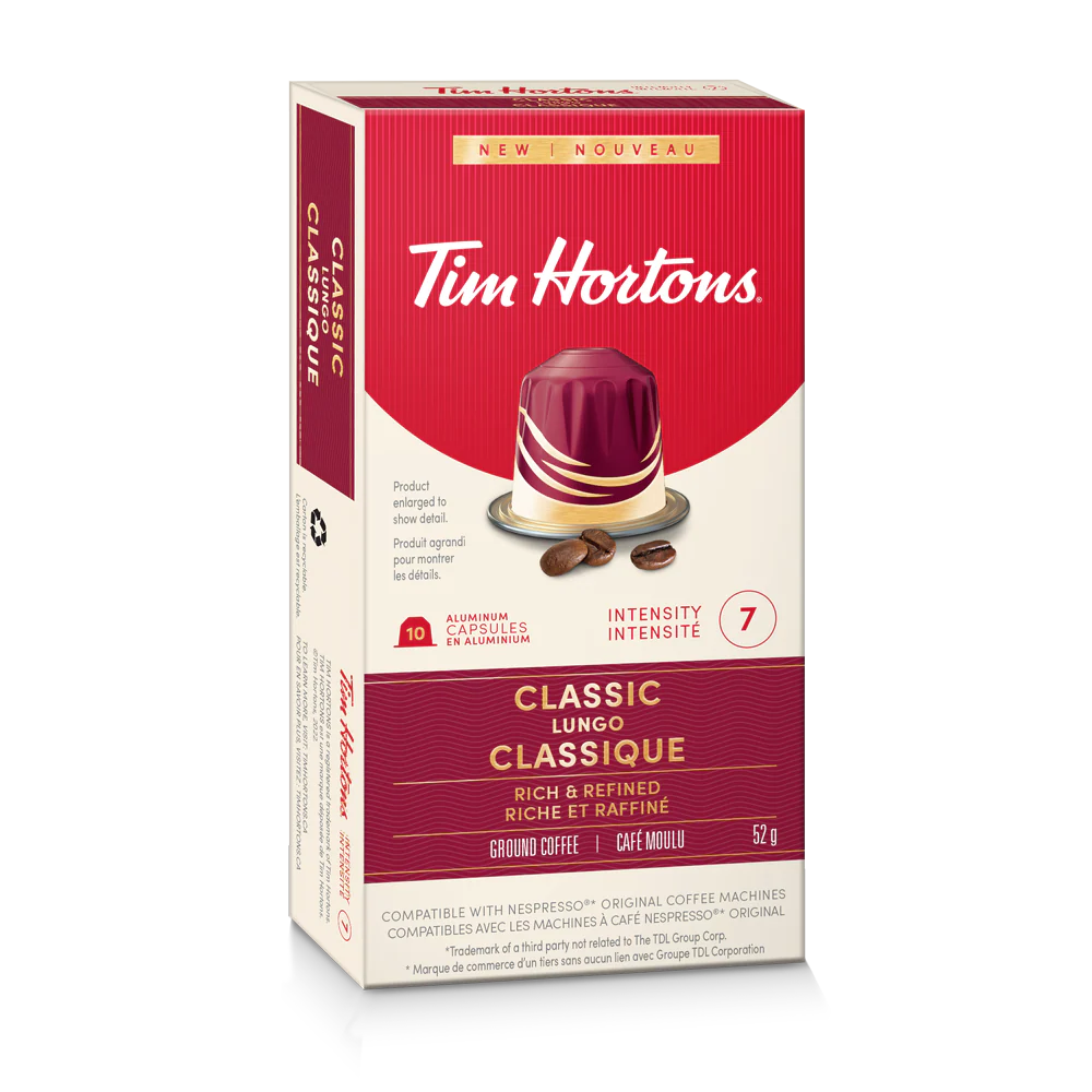 Our aluminum capsules are compatible with Nespresso Original Line. Disclaimer: Tim Hortons is not affiliated with the Nespresso® brand.